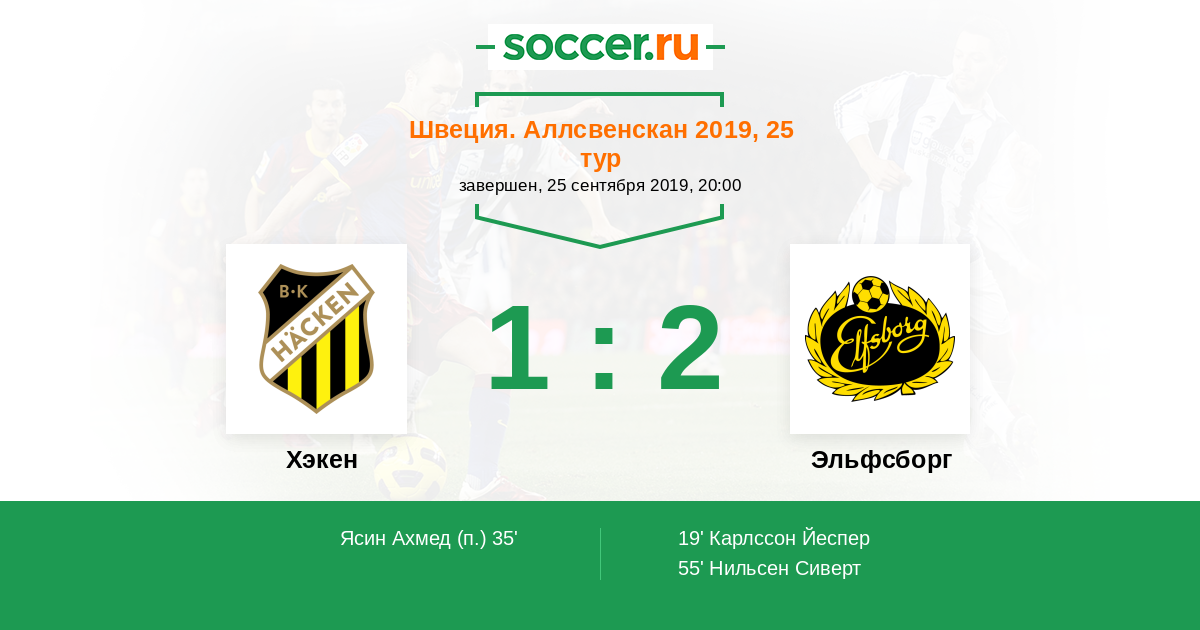 55' (1:2) Нильсен Сиверт (33) (Карлссон Йеспер (11))