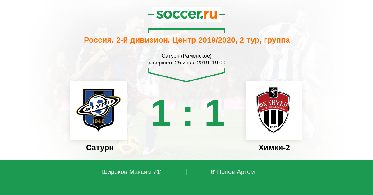 Протокол матча Сатурн против Химки-2
