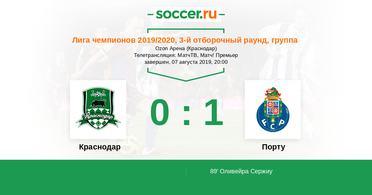 Протокол матча Краснодар против Порту