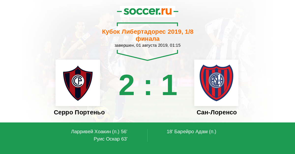 Протокол матча Серро Портеньо против Сан-Лоренсо