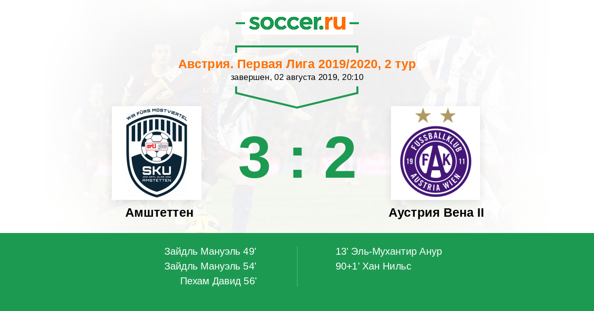 Протокол матча Амштеттен против Аустрия Вена II
