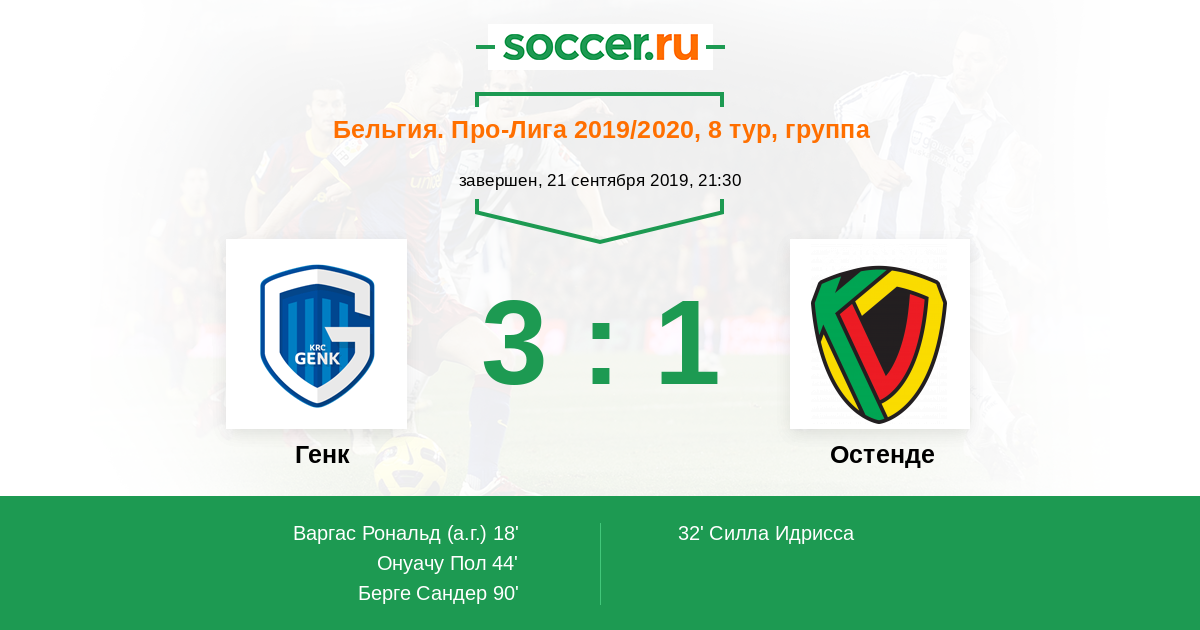 Протокол матча Генк против Остенде