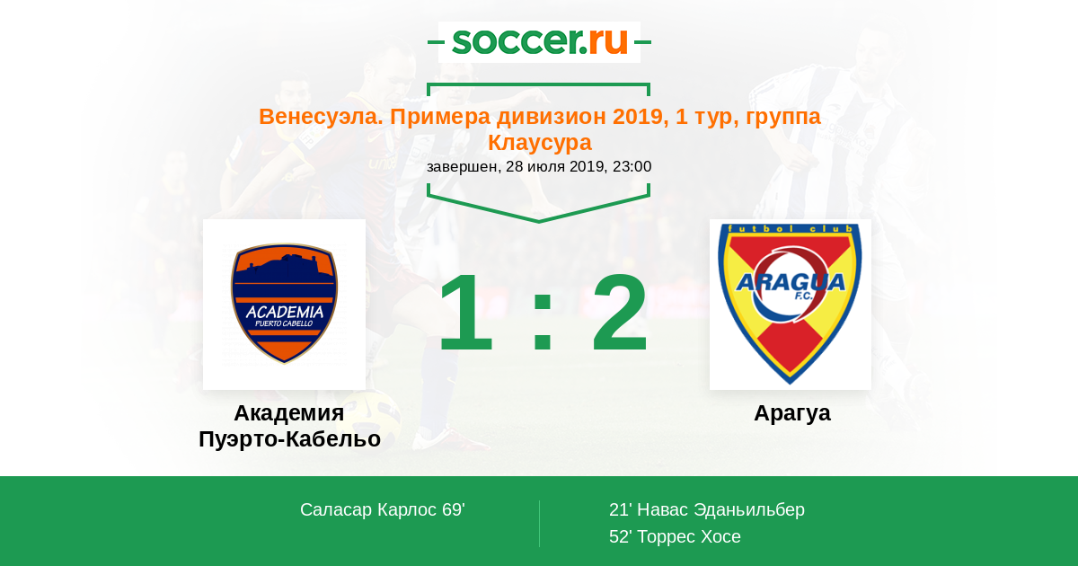 Протокол матча Пуэрто-Кабельо против Арагуа