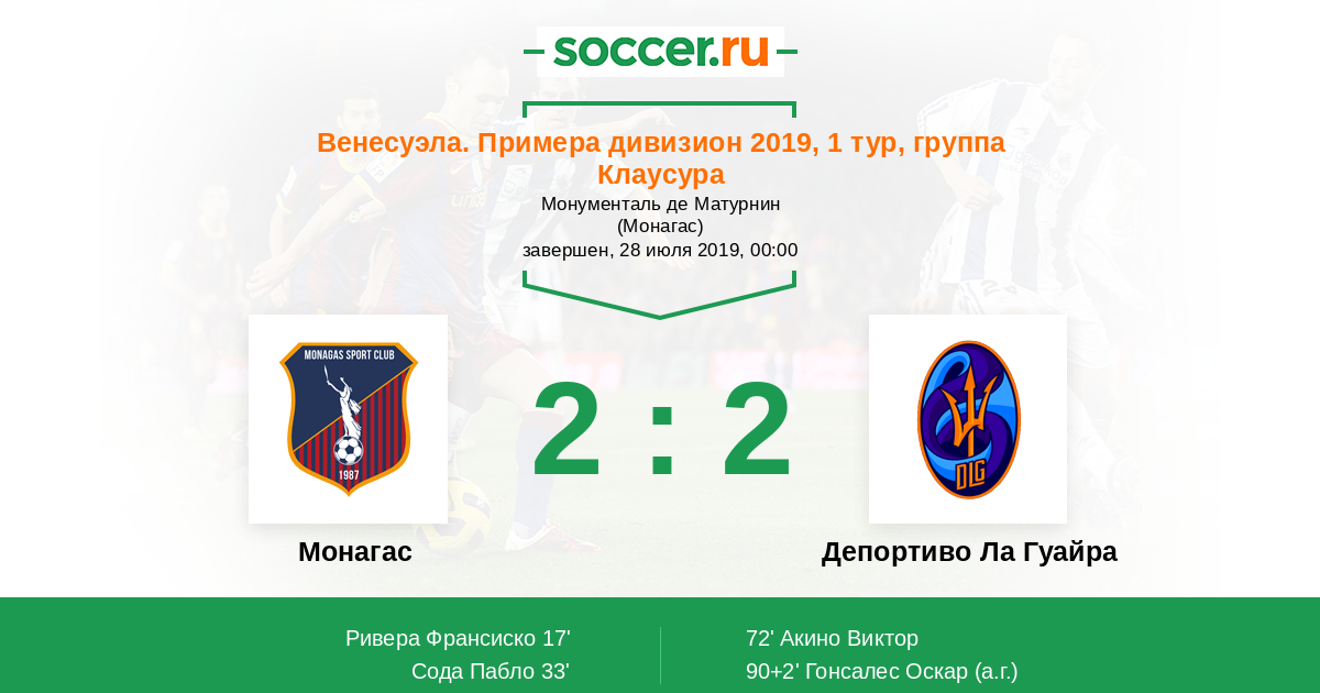 Протокол матча Монагас против Депортиво Ла Гуайра