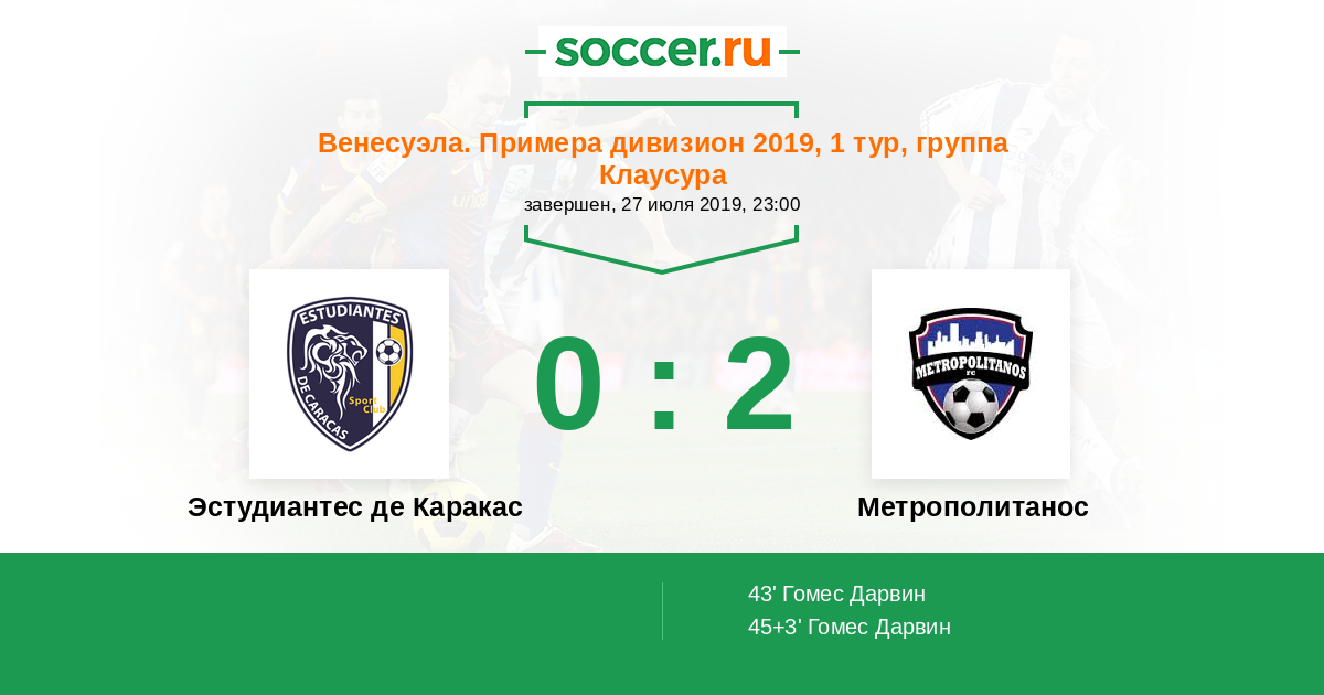 Протокол матча Эстудиантес де Каракас против Метрополитанос