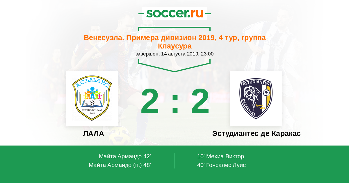 Протокол матча ЛАЛА против Эстудиантес де Каракас