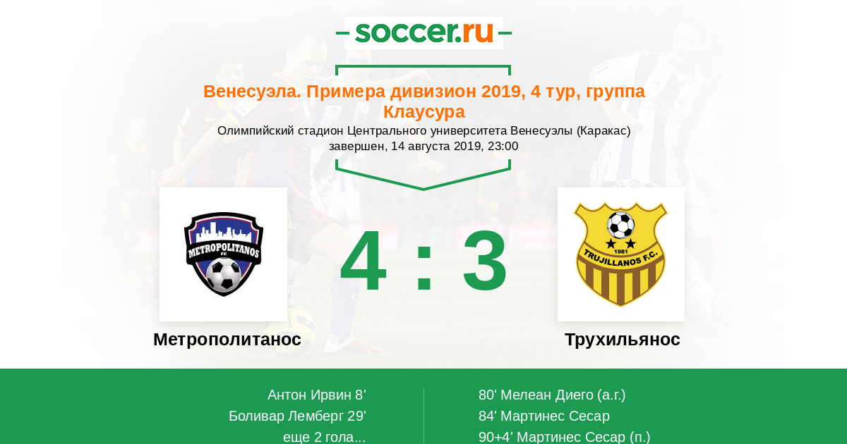 Протокол матча Метрополитанос против Трухильянос