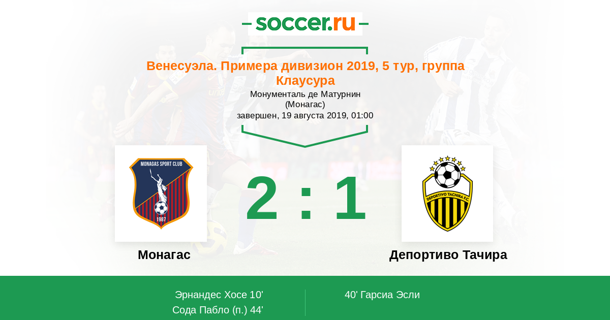 Протокол матча Монагас против Депортиво Тачира
