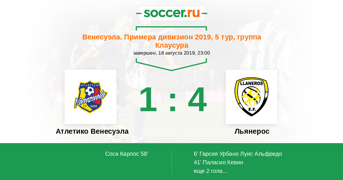 Протокол матча Атлетико Венесуэла против Льянерос