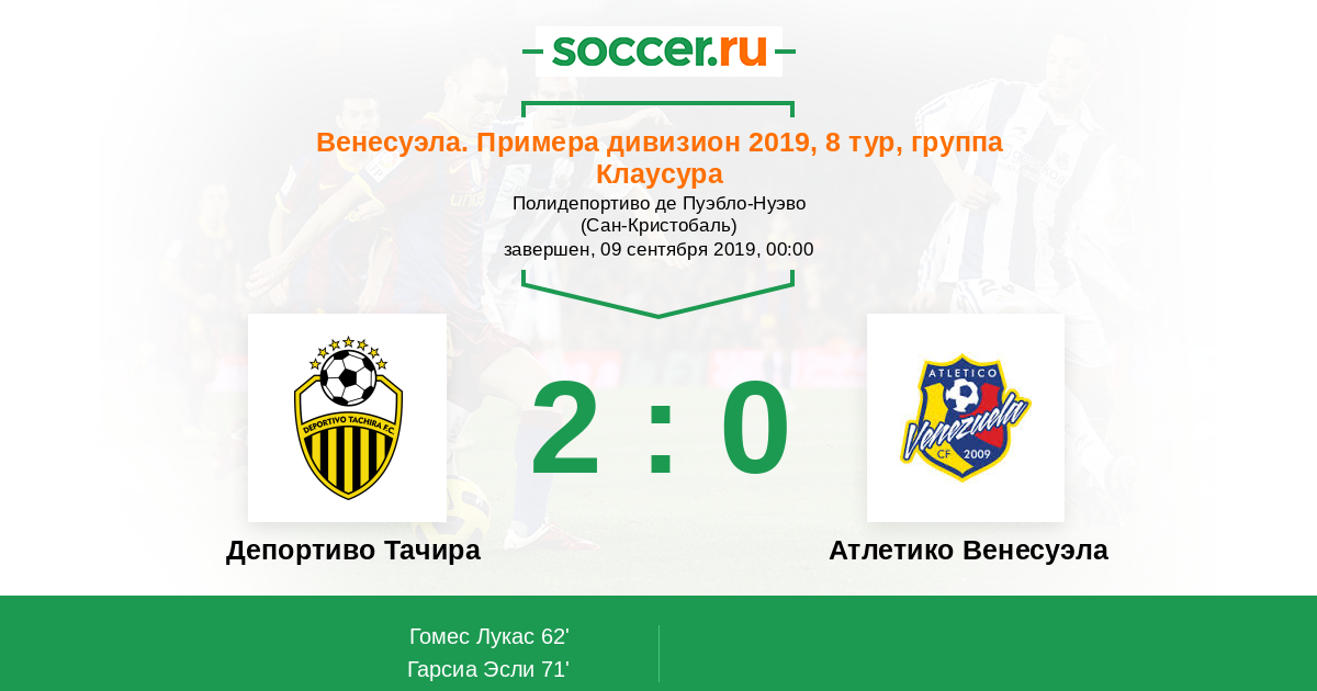 Протокол матча Депортиво Тачира против Атлетико Венесуэла