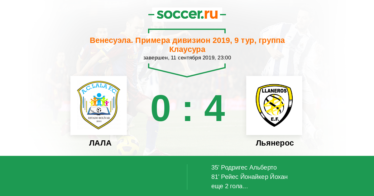 Протокол матча ЛАЛА против Льянерос