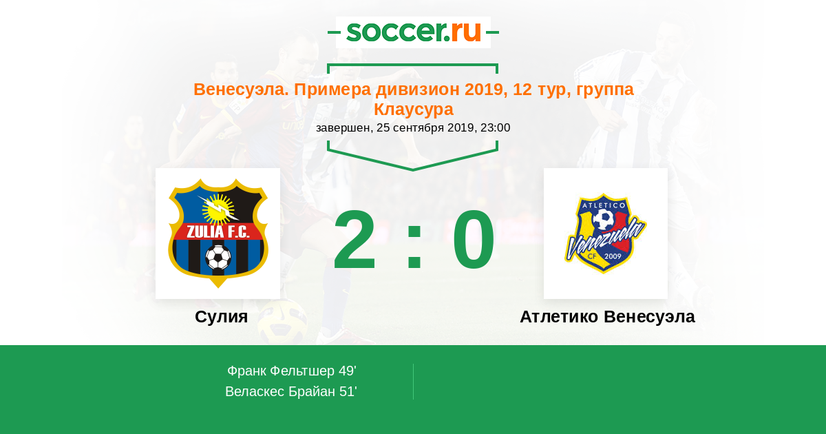 Протокол матча Сулия против Атлетико Венесуэла