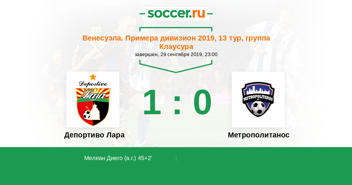 45+2' (1:0) Автогол Мелеан Диего (5)