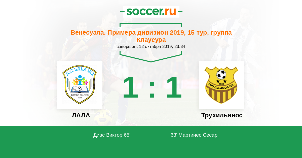 Протокол матча ЛАЛА против Трухильянос