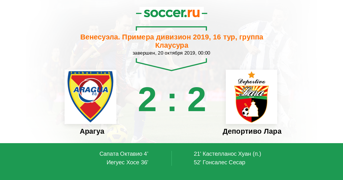 Протокол матча Арагуа против Депортиво Лара