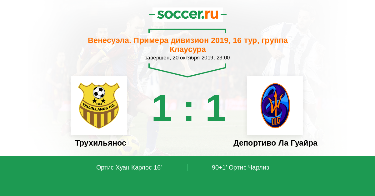 Протокол матча Трухильянос против Депортиво Ла Гуайра