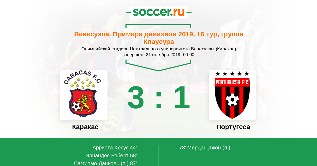 Протокол матча Каракас против Португеса