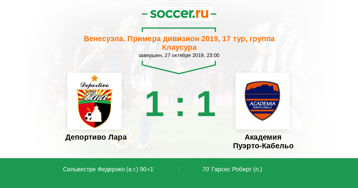 Протокол матча Депортиво Лара против Пуэрто-Кабельо