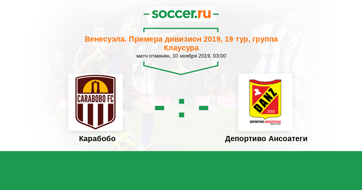 Венесуэла. Примера дивизион 12.08.2017 Карабобо Логотип футбольный клуб Карабобо (Валенсия) 2:0 Логотип футбольный клуб Депортиво Ансоатеги (Пуэрто Ла Круз) Депортиво Ансоатеги