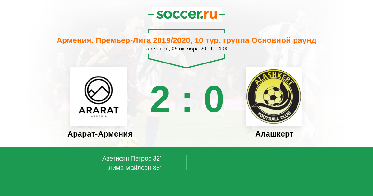 Протокол матча Арарат-Армения против Алашкерт