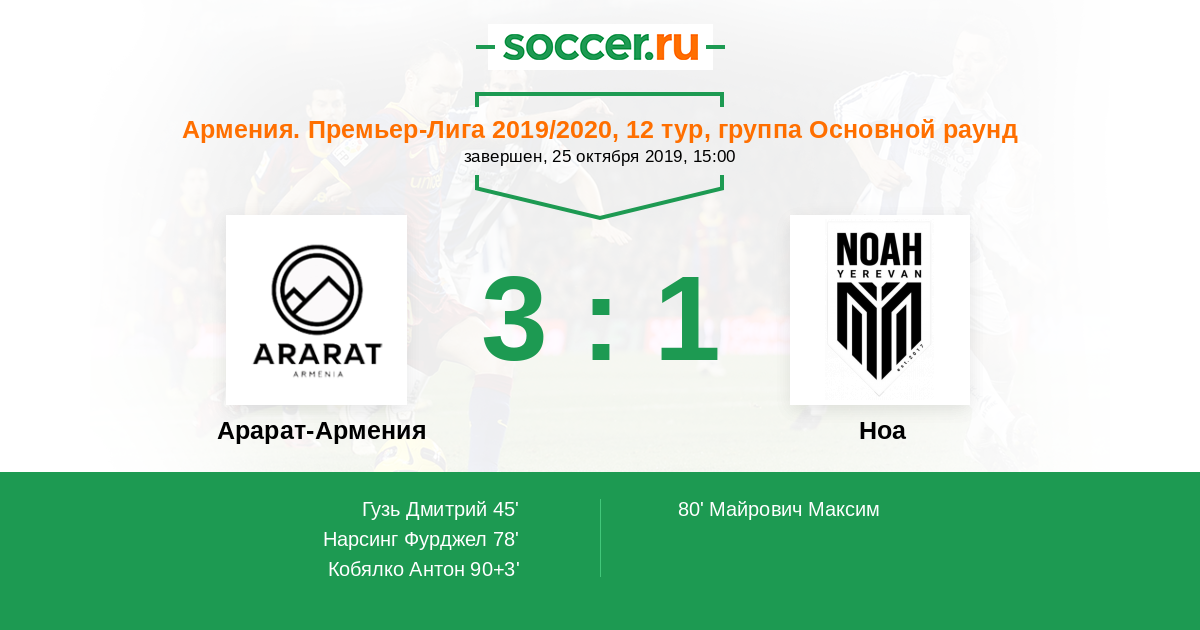 Протокол матча Арарат-Армения против Арцах