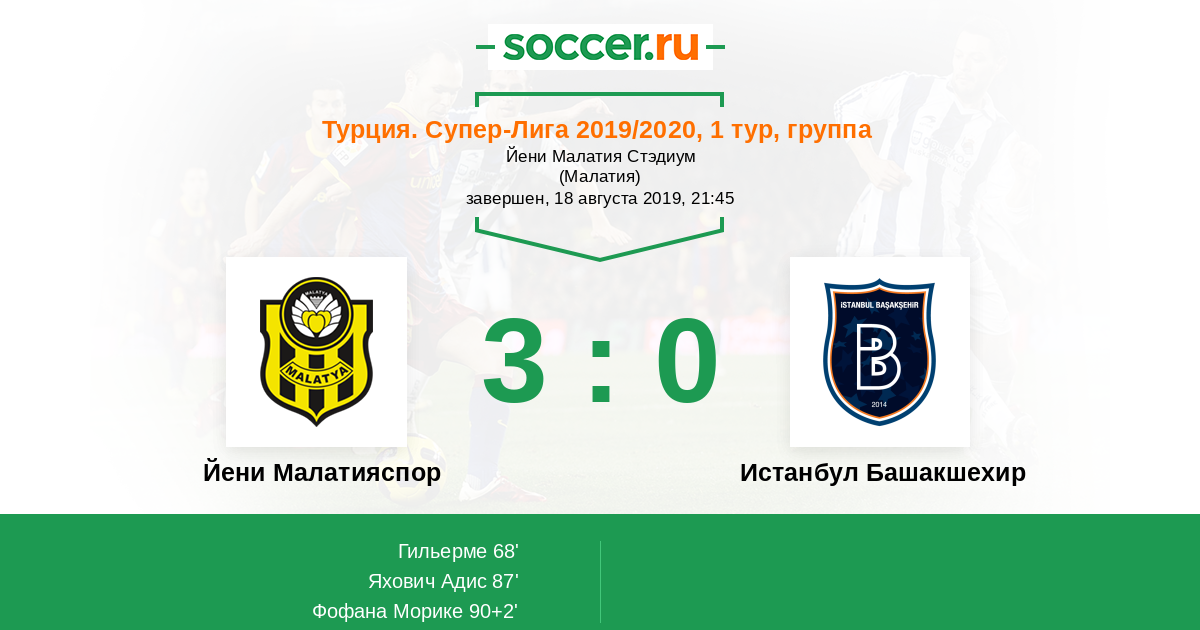 Протокол матча Йени Малатияспор против Истанбул Башакшехир