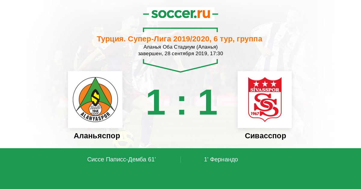 Протокол матча Аланьяспор против Сивасспор