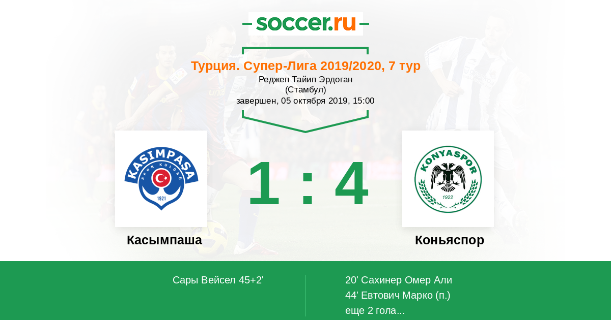 Протокол матча Касымпаша против Коньяспор