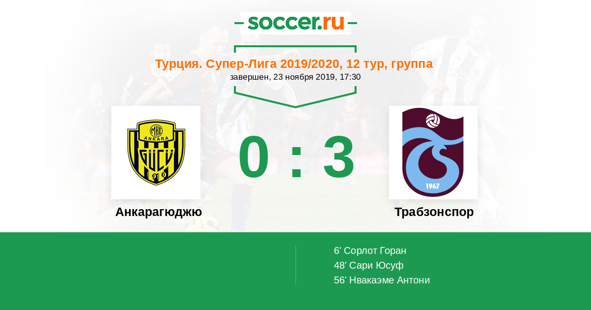 Протокол матча Анкарагюджю против Трабзонспор