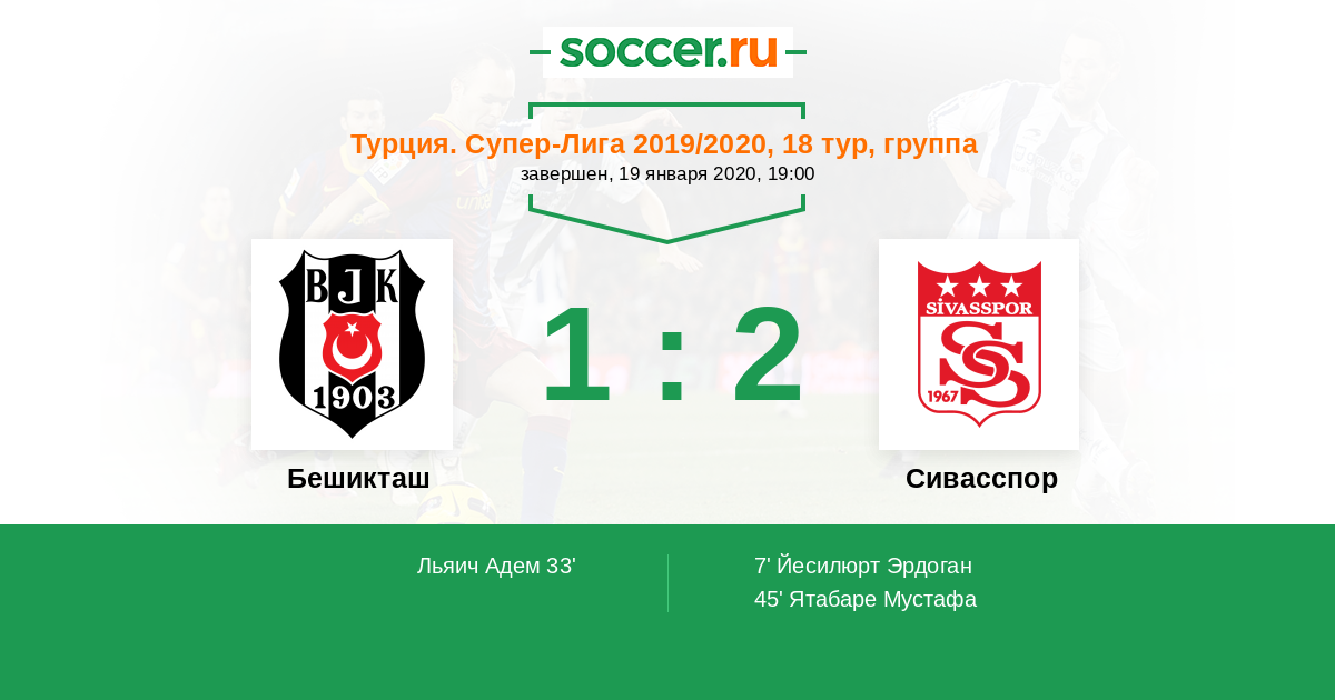 Протокол матча Бешикташ против Сивасспор