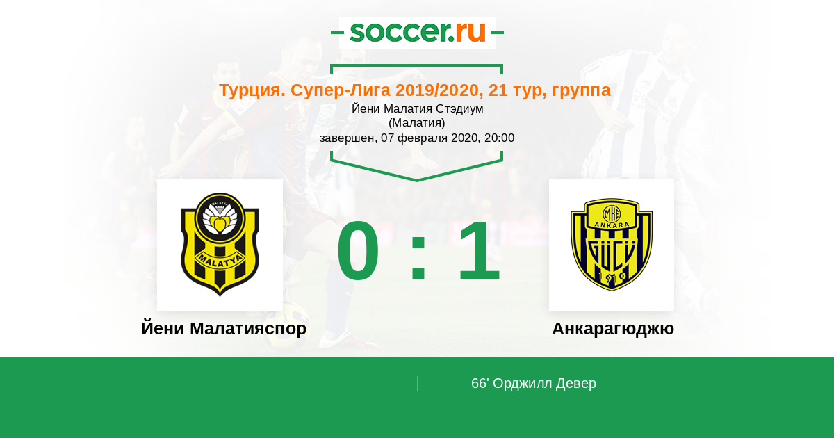 Протокол матча Йени Малатияспор против Анкарагюджю