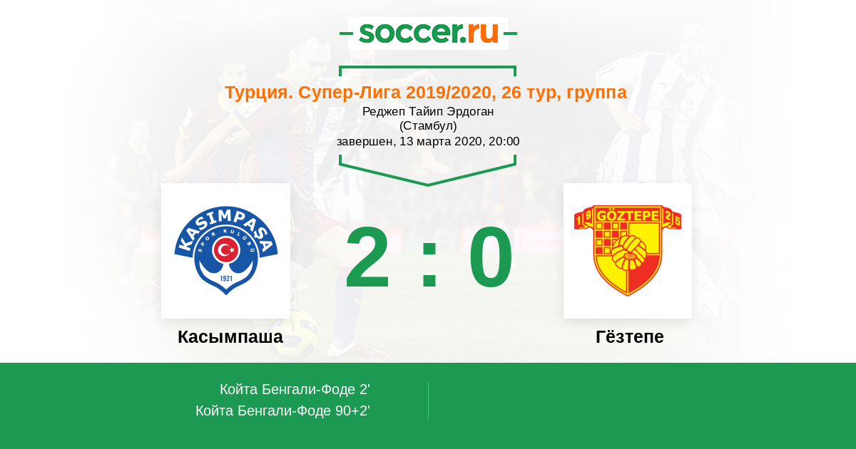 Протокол матча Касымпаша против Гёзтепе