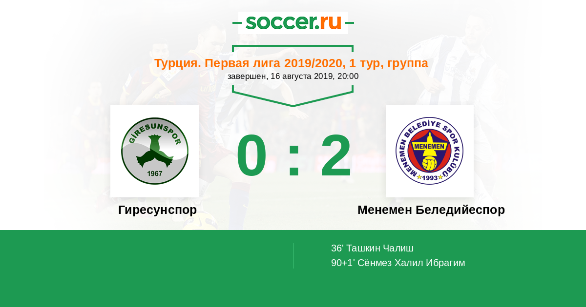 Протокол матча Гиресунспор против Менемен Беледийеспор