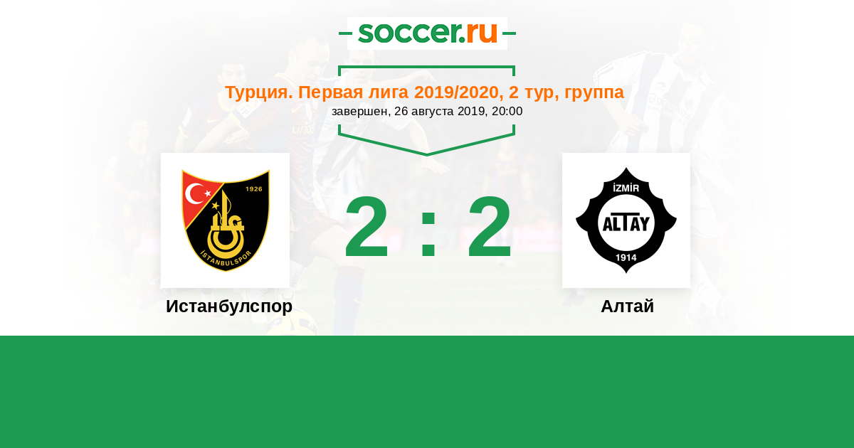 Турция. Первая лига 20.09.2020 Истанбулспор Логотип футбольный клуб Истанбулспор (Стамбул) 2:1 Логотип футбольный клуб Алтай (Измир) Алтай