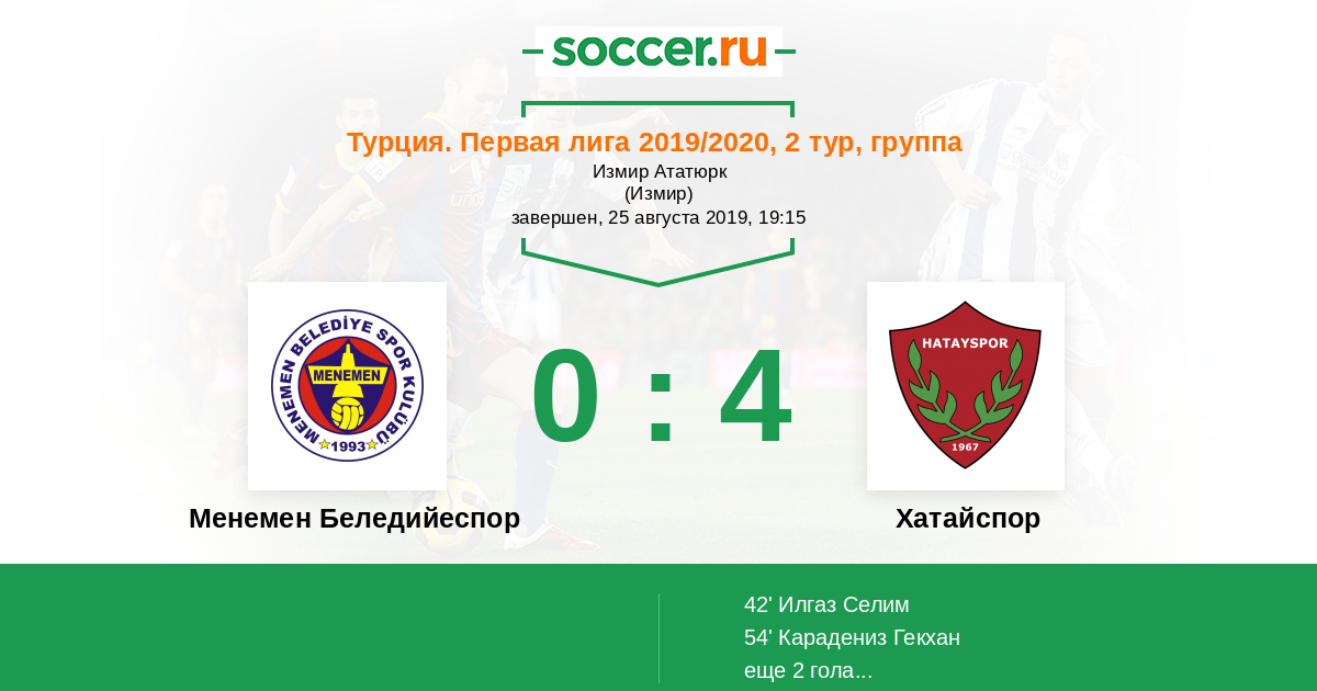 Протокол матча Менемен Беледийеспор против Хатайспор
