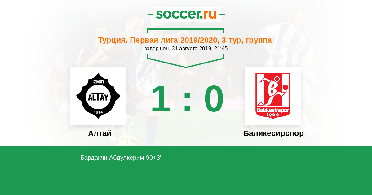 Гол90+3' (1:0) Бардакчи Абдулкерим (42) (Хюсаметтин Йенер (9))