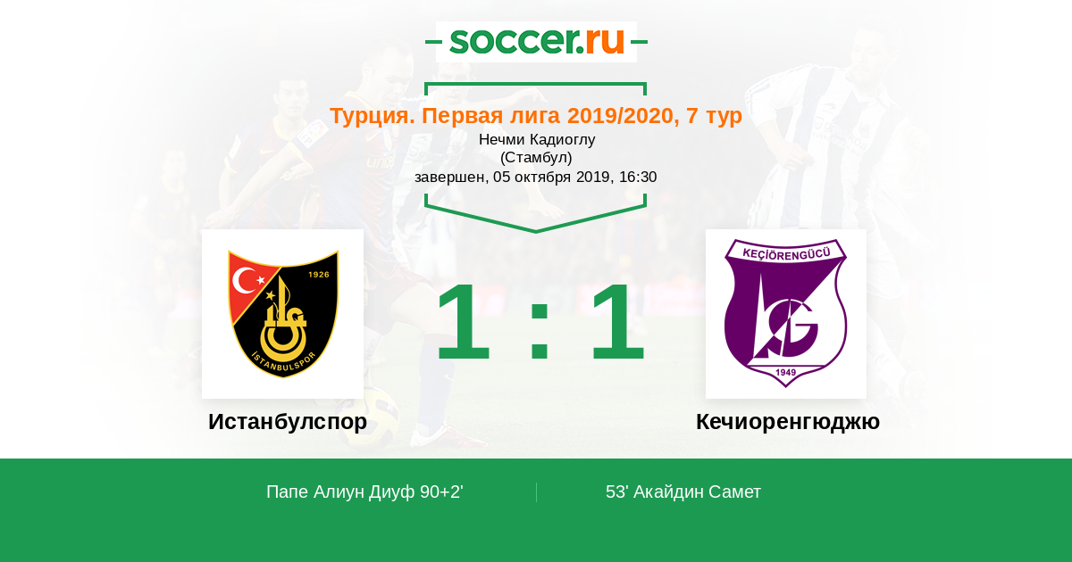 Протокол матча Истанбулспор против Кечиоренгюджю