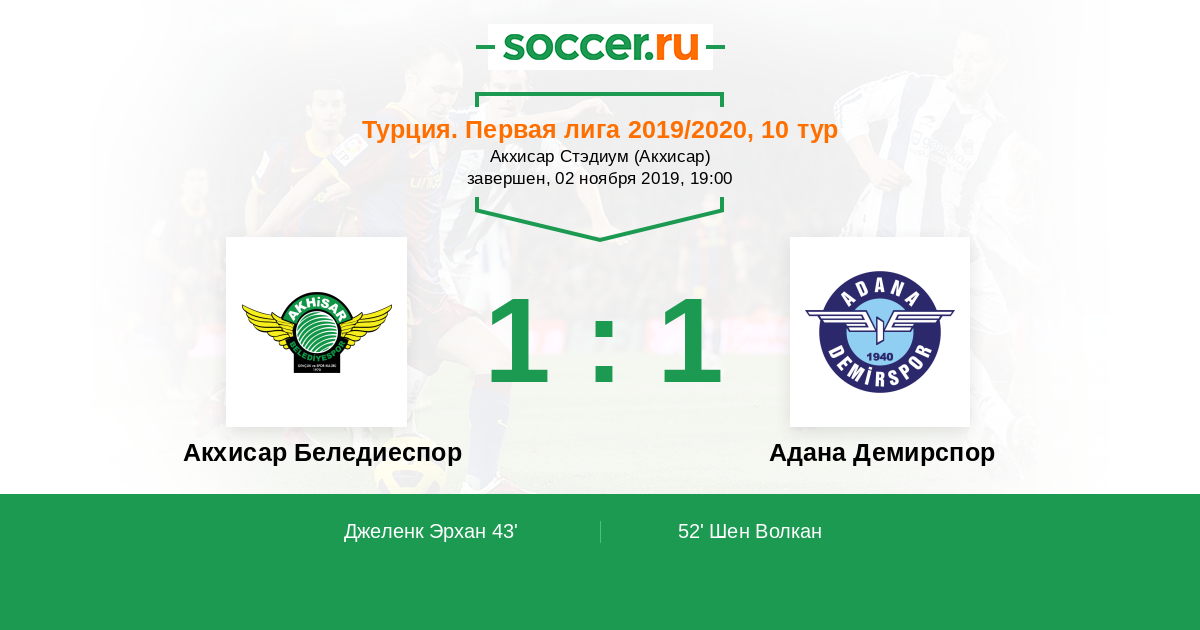 Протокол матча Акхисар Беледиеспор против Адана Демирспор