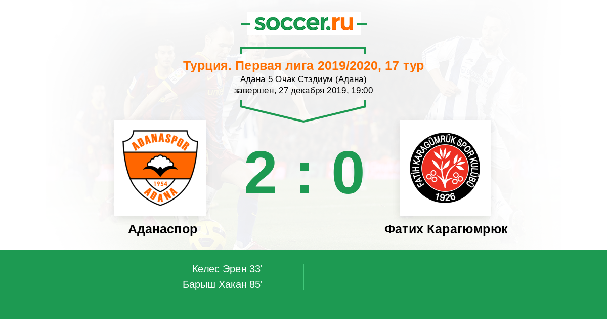 Протокол матча Аданаспор против Фатих Карагюмрюк