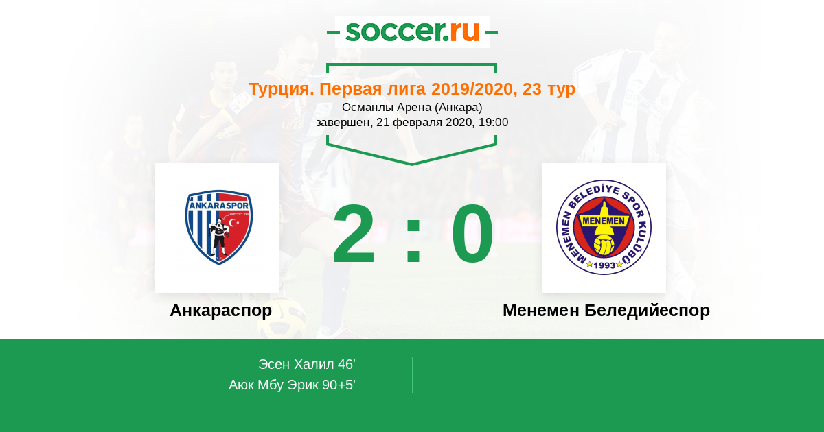 Протокол матча Османлыспор против Менемен Беледийеспор