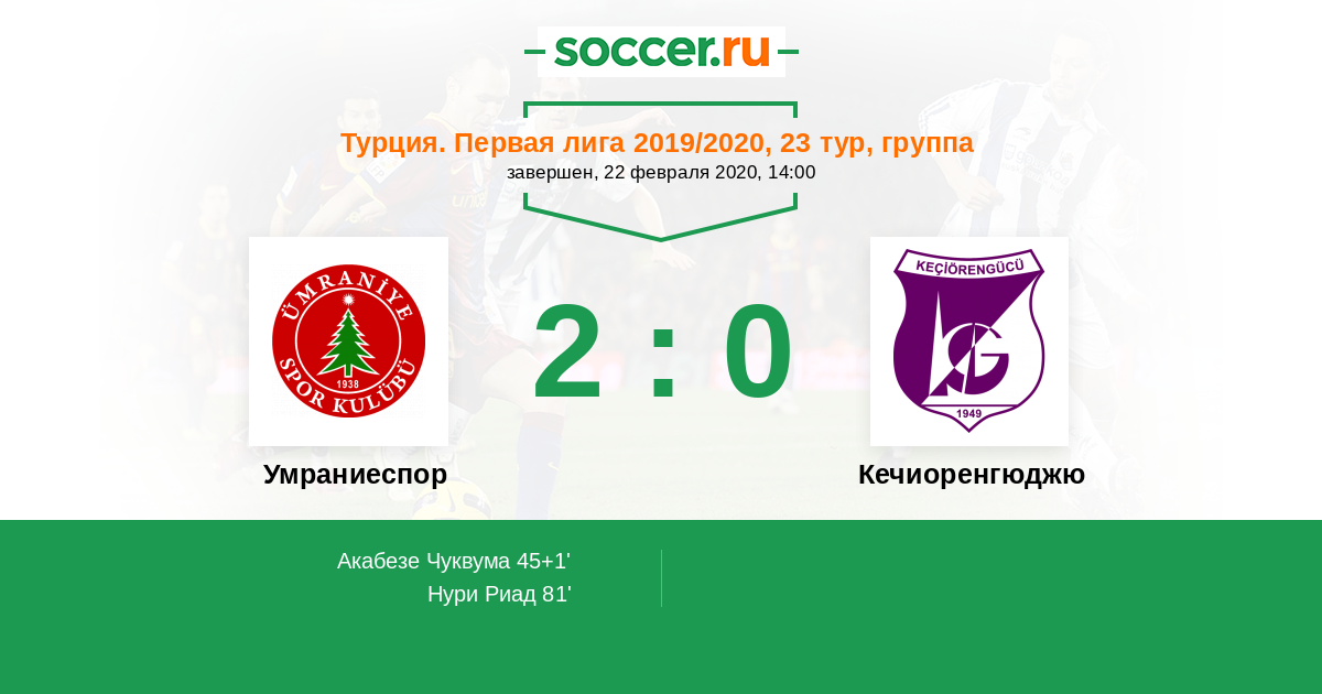 Протокол матча Умраниеспор против Кечиоренгюджю