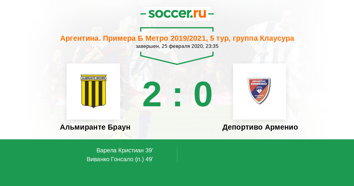 Протокол матча Альмиранте Браун против Депортиво Арменио