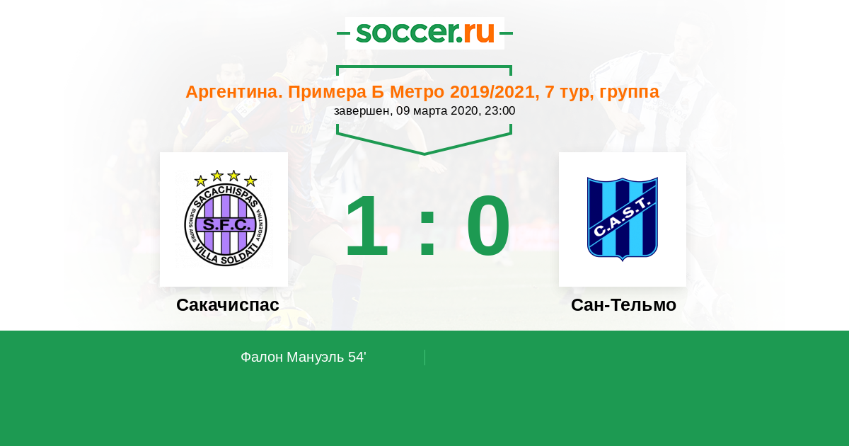 Протокол матча Сакачиспас против Сан-Тельмо