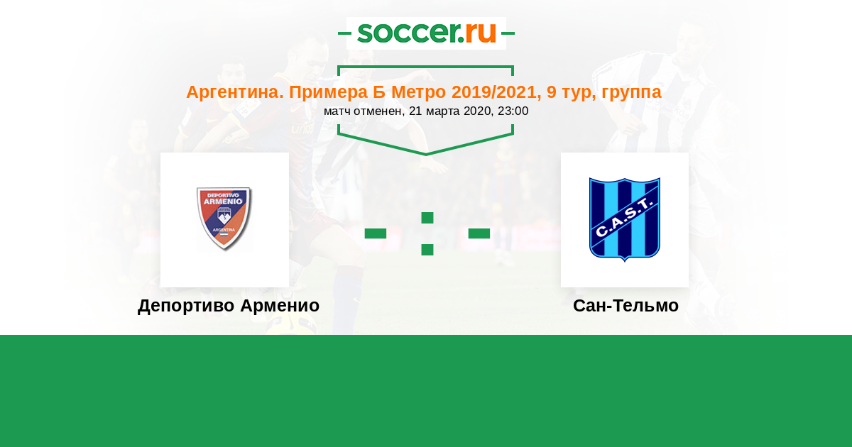 Аргентина. Примера Б Метро 04.12.2020 Сан-Тельмо Логотип футбольный клуб Сан-Тельмо 0:2 Логотип футбольный клуб Депортиво Арменио Депортиво Арменио