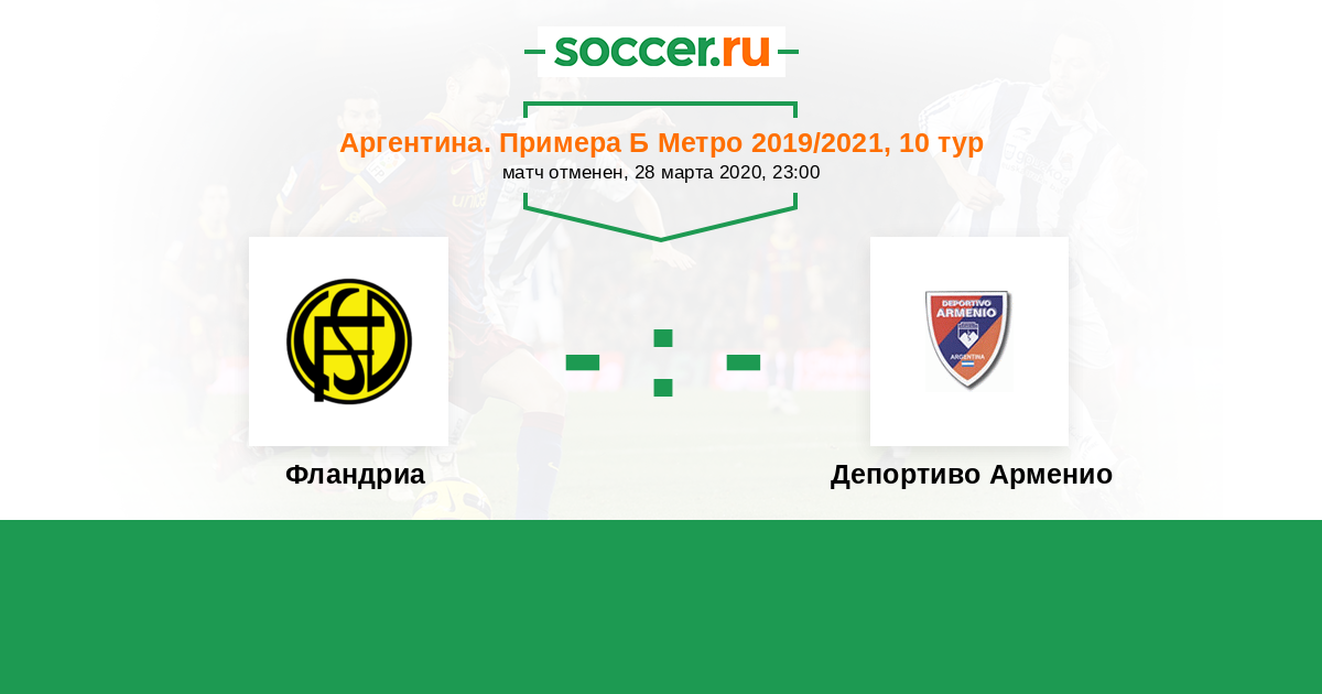 Аргентина. Примера Б Метро 06.03.2021 Депортиво Арменио Логотип футбольный клуб Депортиво Арменио 0:2 Логотип футбольный клуб Фландриа (Лухан) Фландриа