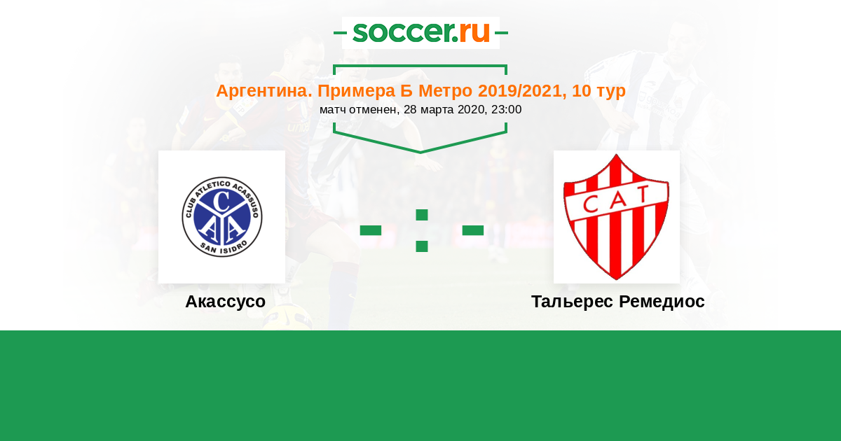 Аргентина. Примера Б Метро 10.04.2021 Акассусо Логотип футбольный клуб Акассусо (Сан-Исидро) 2:2 Логотип футбольный клуб Тальерес Ремедиос Тальерес Ремедиос