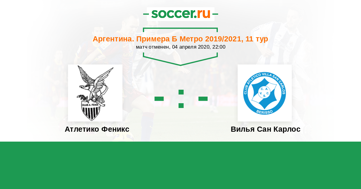 Аргентина. Примера Б Метро 23.04.2021 Атлетико Феникс Логотип футбольный клуб Атлетико Феникс (Пилар) 2:1 Логотип футбольный клуб Вилья Сан Карлос (Берисо) Вилья Сан Карлос