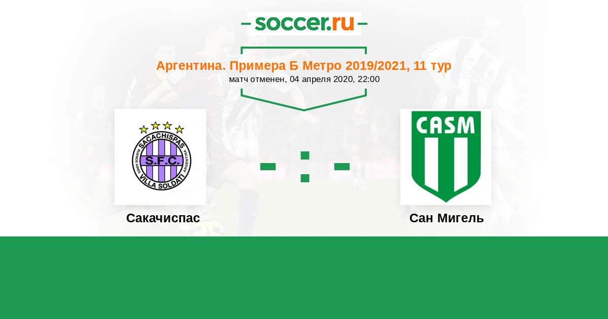 Аргентина. Примера Б Метро 25.04.2021 Сакачиспас Логотип футбольный клуб Сакачиспас (Вилья Солдати) 1:0 Логотип футбольный клуб Сан Мигель Сан Мигель