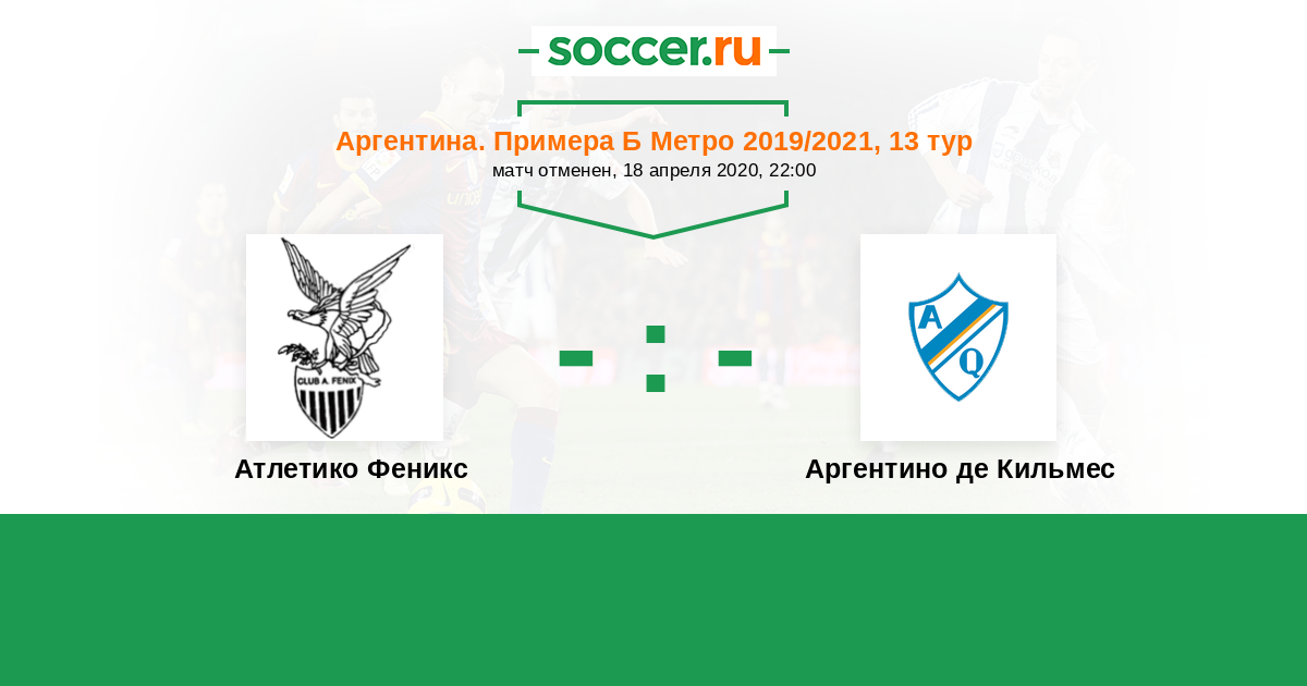 Аргентина. Примера Б Метро 23.04.2022 Аргентино де Кильмес Логотип футбольный клуб Аргентино де Кильмес 2:2 Логотип футбольный клуб Атлетико Феникс (Пилар) Атлетико Феникс