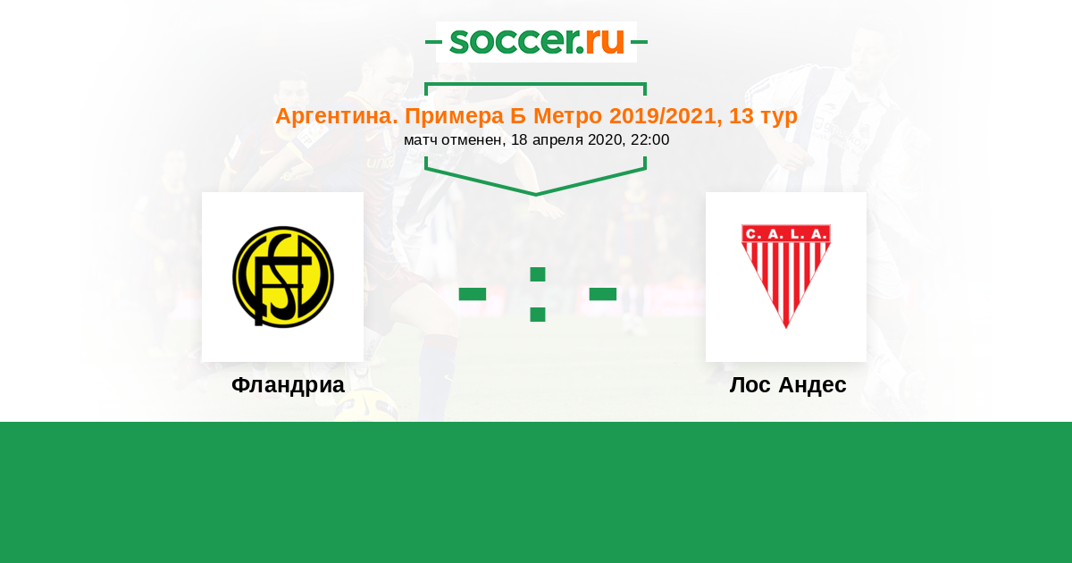 Аргентина. Примера Б Метро 06.12.2020 Фландриа Логотип футбольный клуб Фландриа (Лухан) 1:1 Логотип футбольный клуб Лос Андес (Ломас-де-Самора) Лос Андес